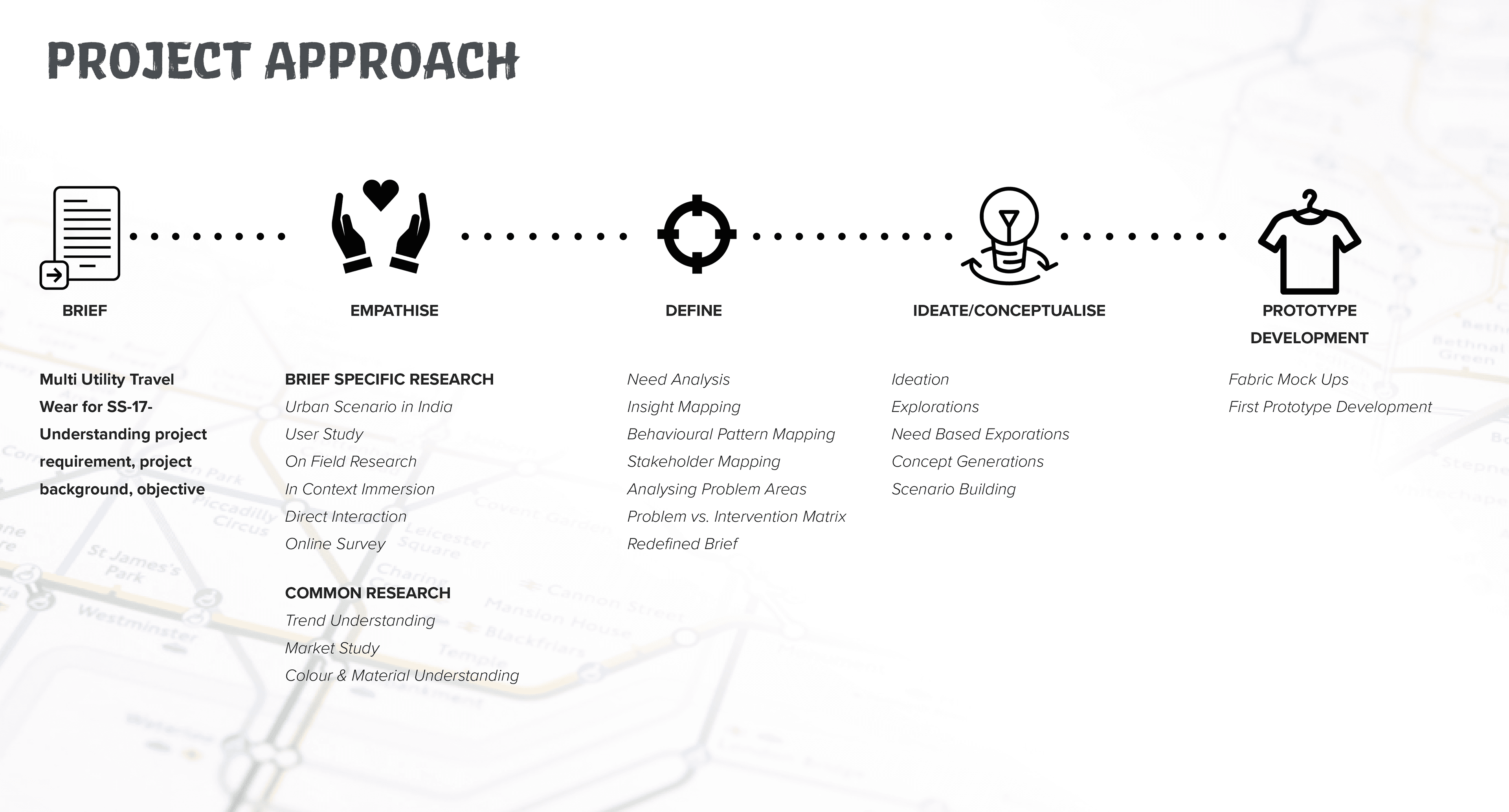 The project began with identifying right mode of travel, peoples existing travel behaviours as well as issues, to come up with key concern areas to focus for this project.