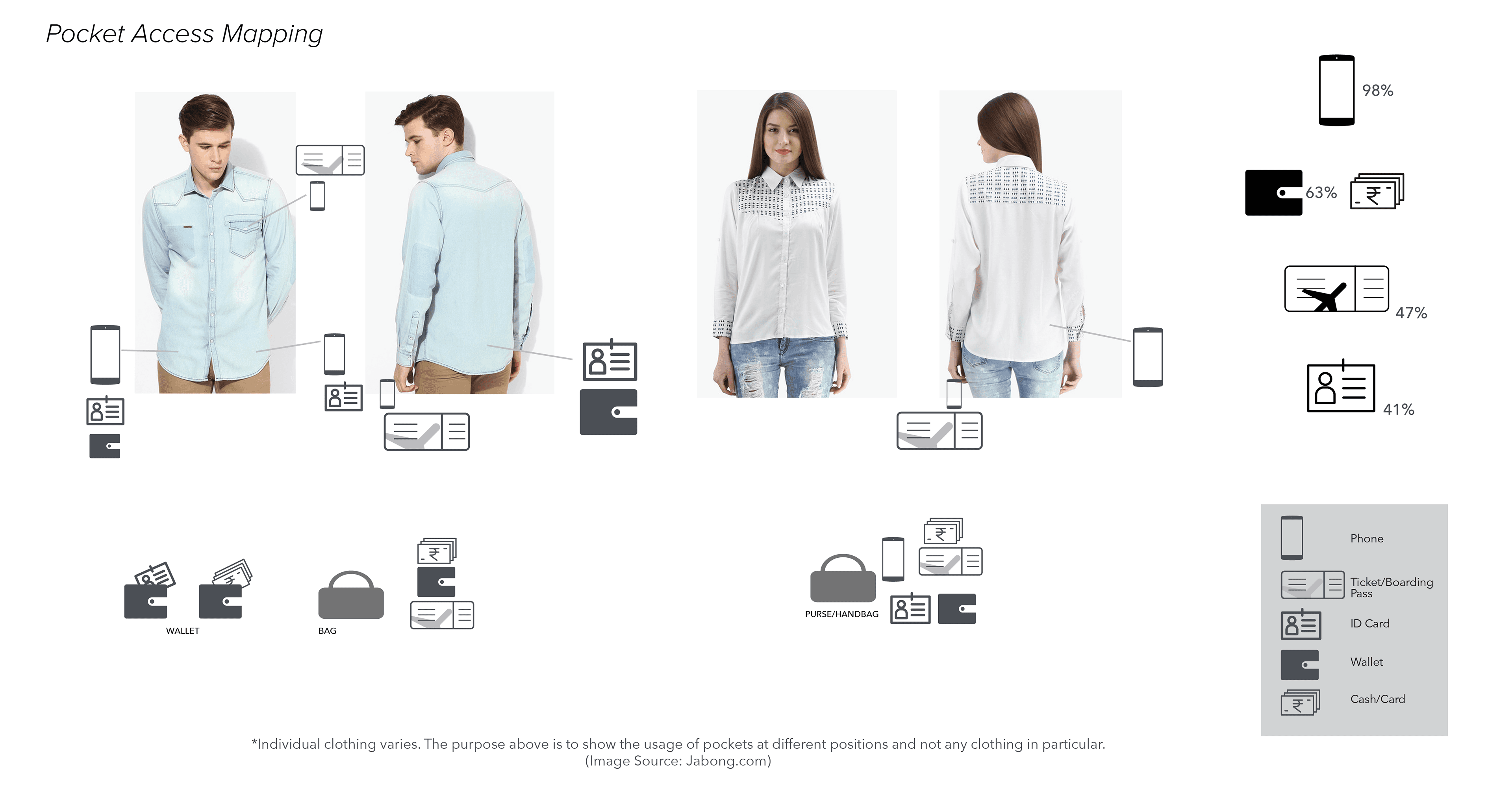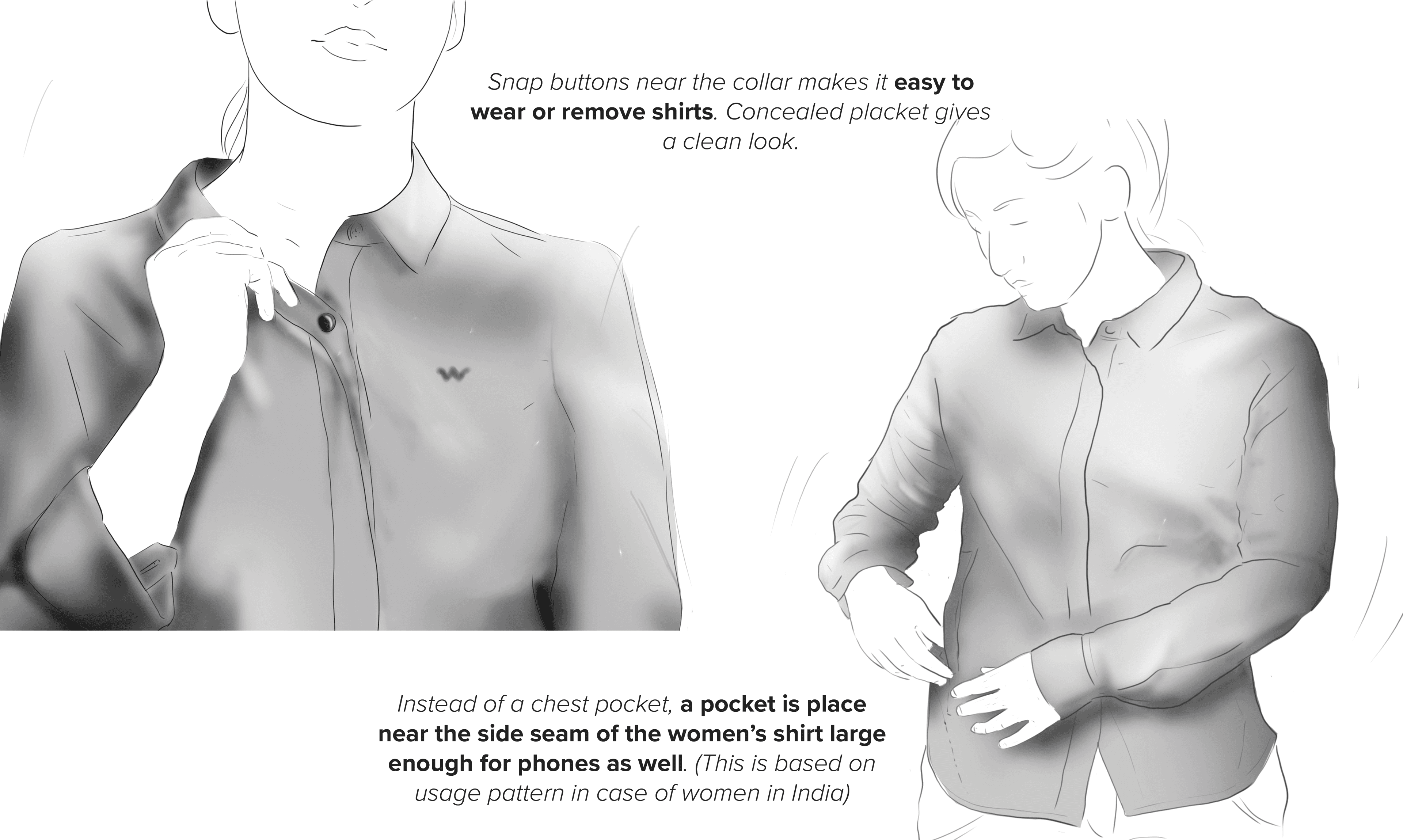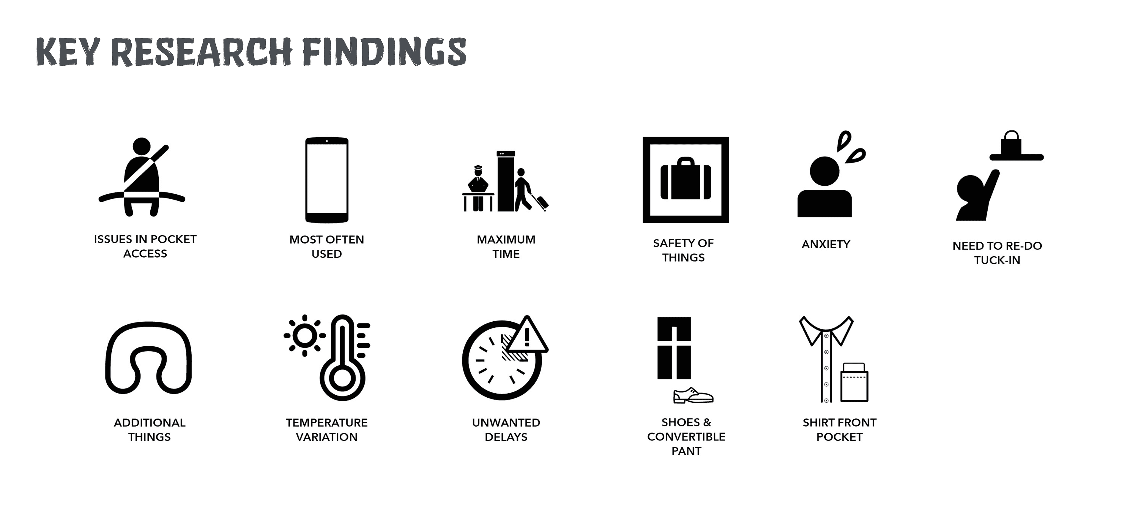 Based on user research insights (explained below in process), a range of clothing was designed which caters to the need of the travelers in the selected context.