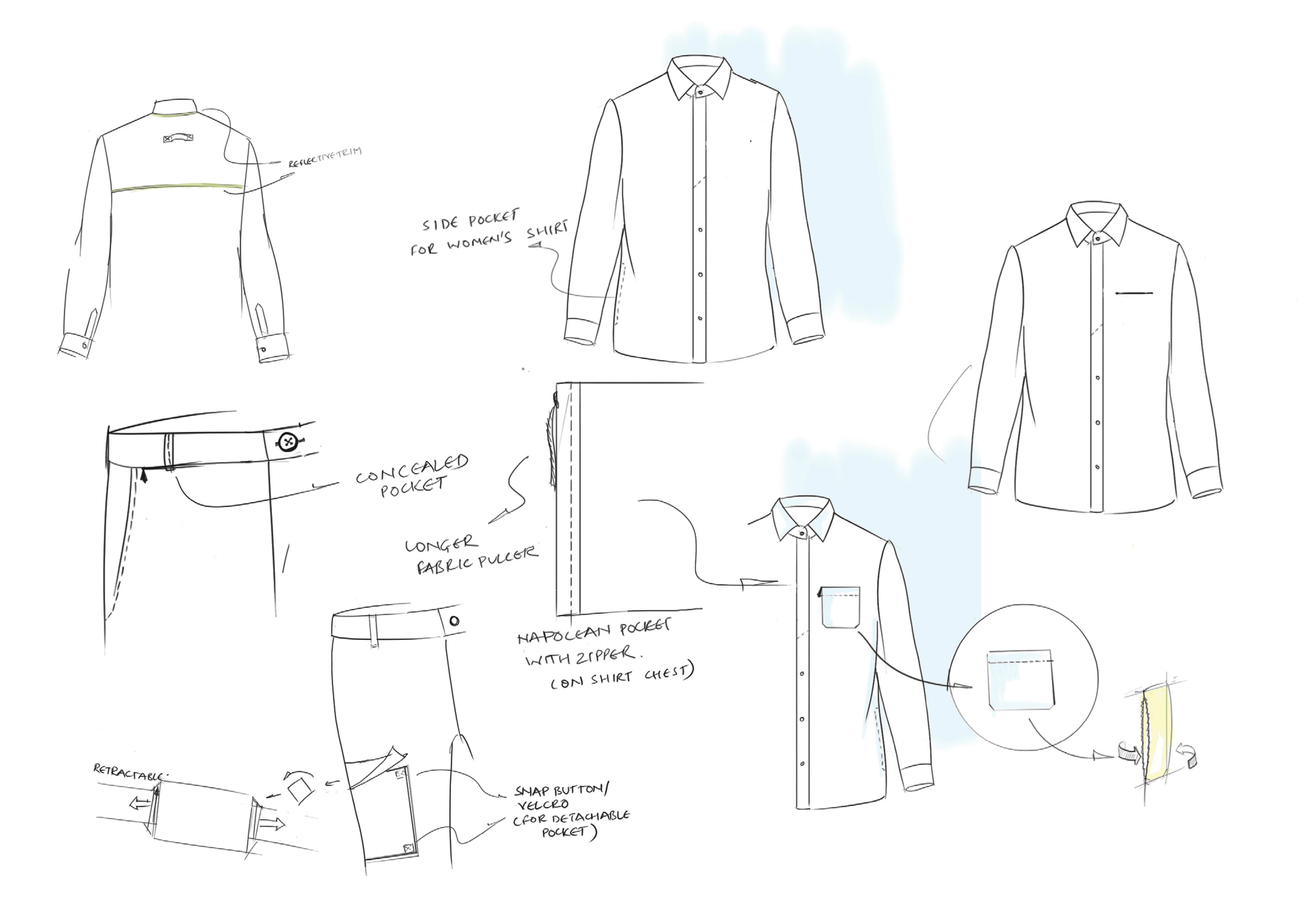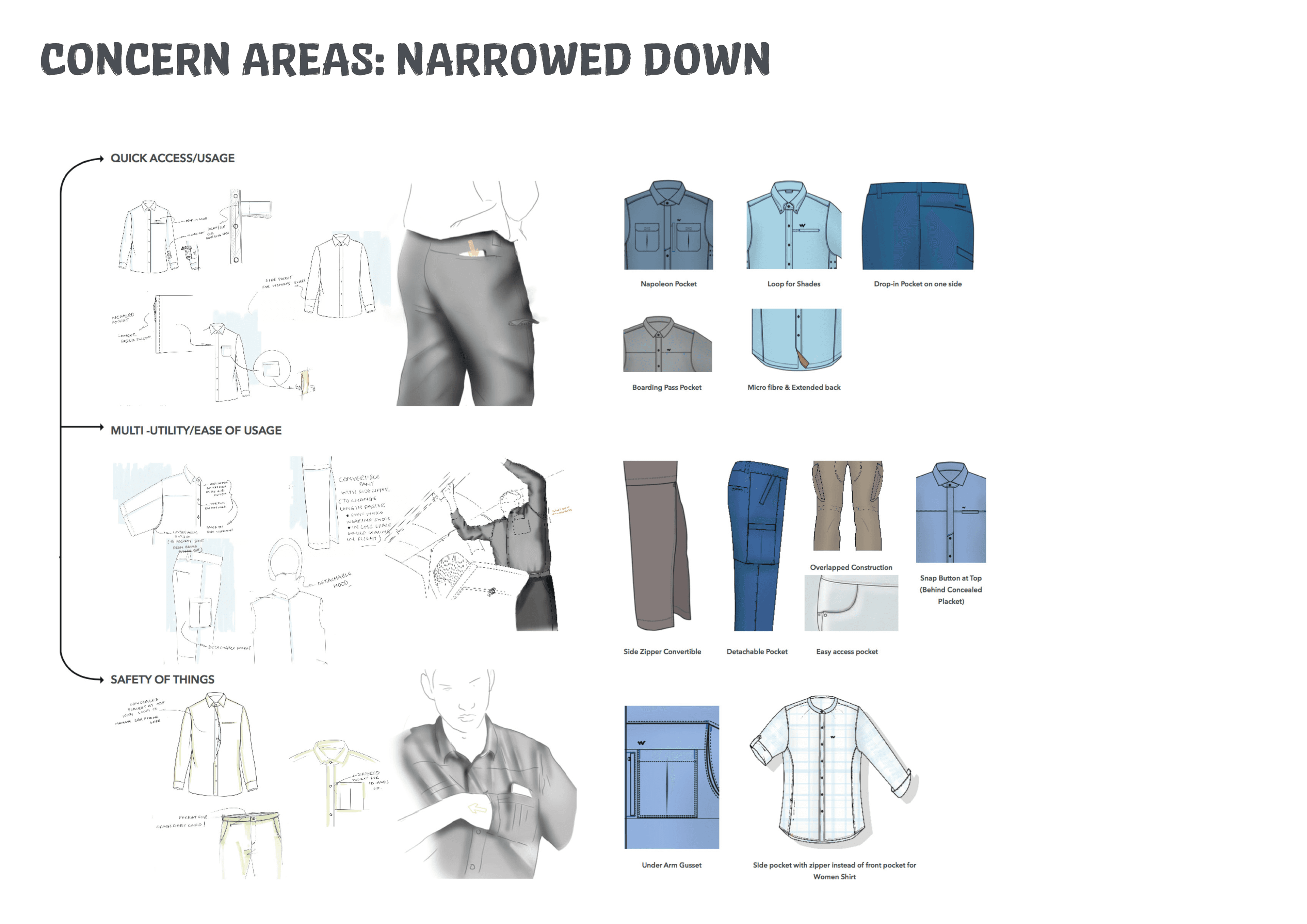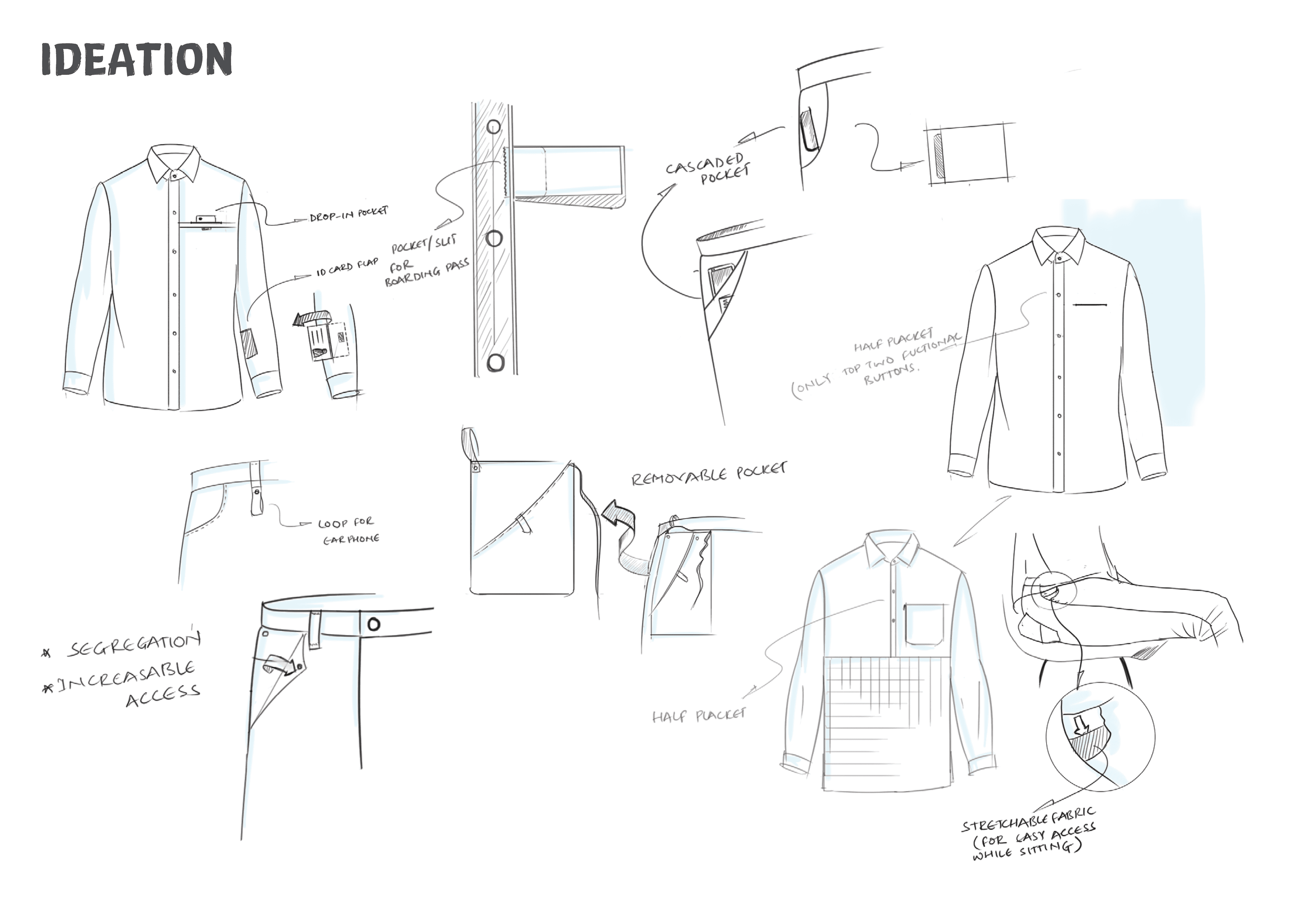 The brief was "To create a range of Multi-utility Travel Wear' for SS17, for the increasing number city traveller. A range that incorporates design interventions to make traveling experience seamless for frequent travellers in urban scenario."