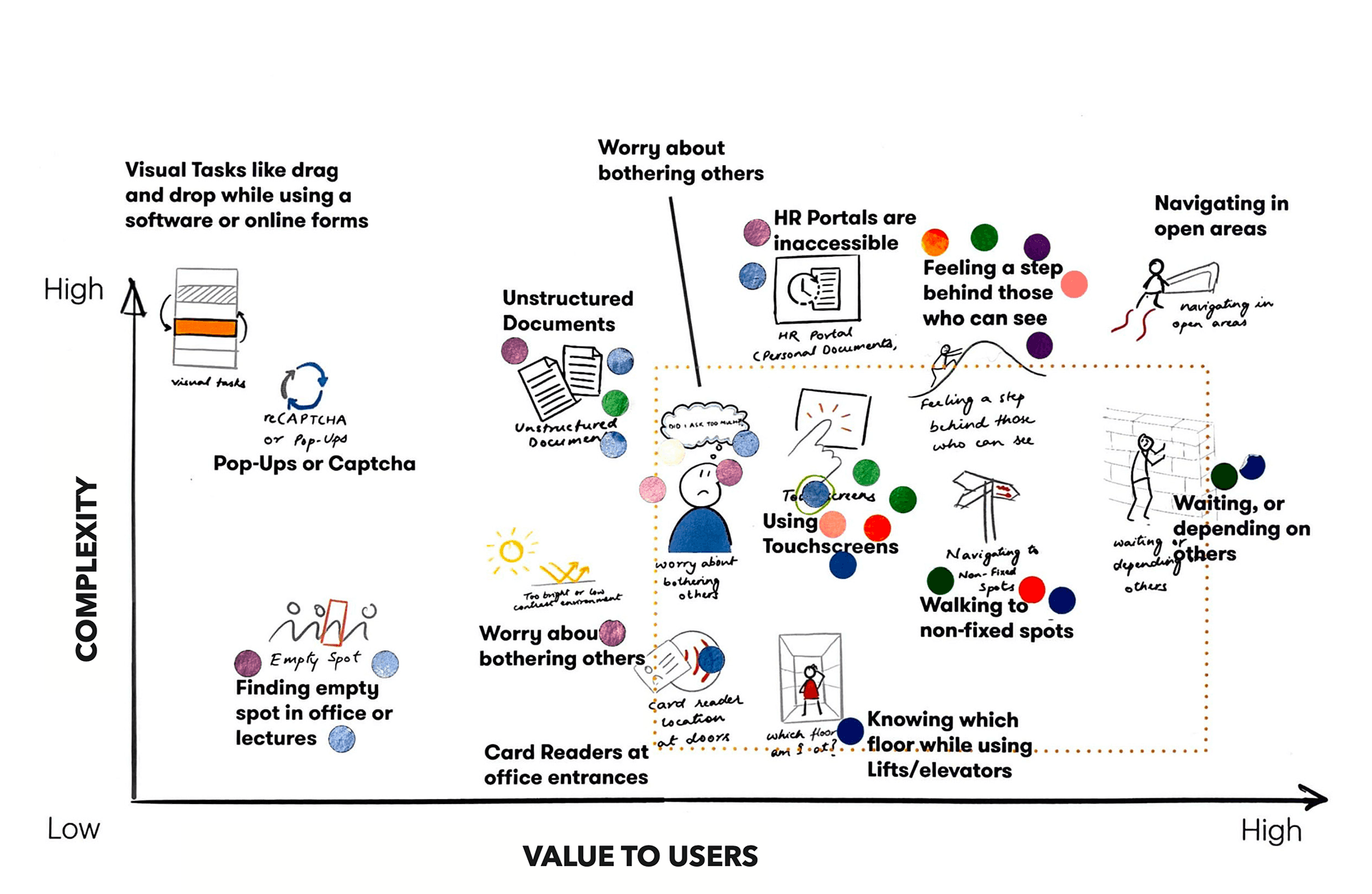 The concept was developed through an iterative, participatory process that treated PBLV as experts in their own navigation practices. Interviews and in-context observations in workplace and educational settings were conducted to surface everyday navigation challenges and to map recurring breakdown moments.